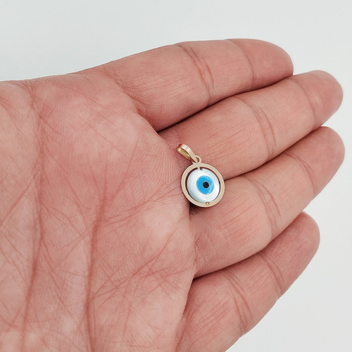 آویز گردنبند سوزیانا مدل چشم نظر ساخته شده از طلای 18 عیار می باشد که در وسط قاب طلای دایره ای آن از یک چشم نظر شیشه ای صدفی با کیفیت و قابل چرخش استفاده شده است. چشم نظر دارای مفاهیم سنتی و مذهبی می باشد. ابعاد این پلاک آویز حدود 1 در 1 سانتی متر می باشد. این محصول با بسته بندی اختصاصی برند میا گالری عرضه می گردد.